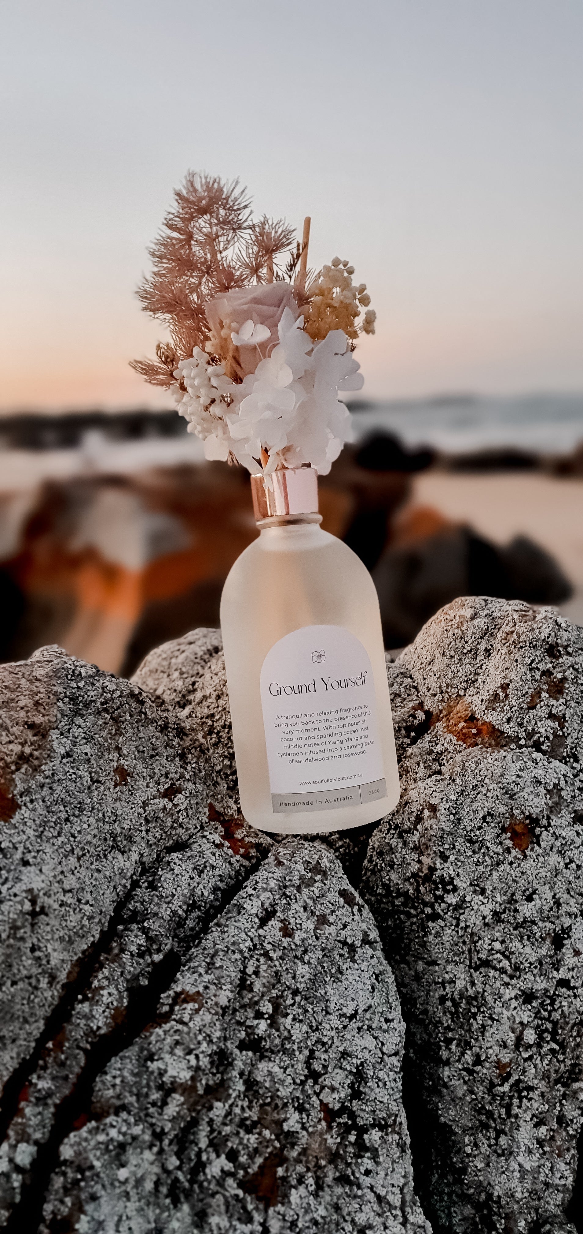 Place our Ground Yourself Reed Diffuser in your living room, bedroom, or any space where you seek solace and serenity. Let its comforting fragrance envelop you, guiding you on a journey of inner peace and relaxation. Whether you're starting your day with a moment of mindfulness or winding down after a long day's work, our diffuser is here to support you on your path to tranquillity