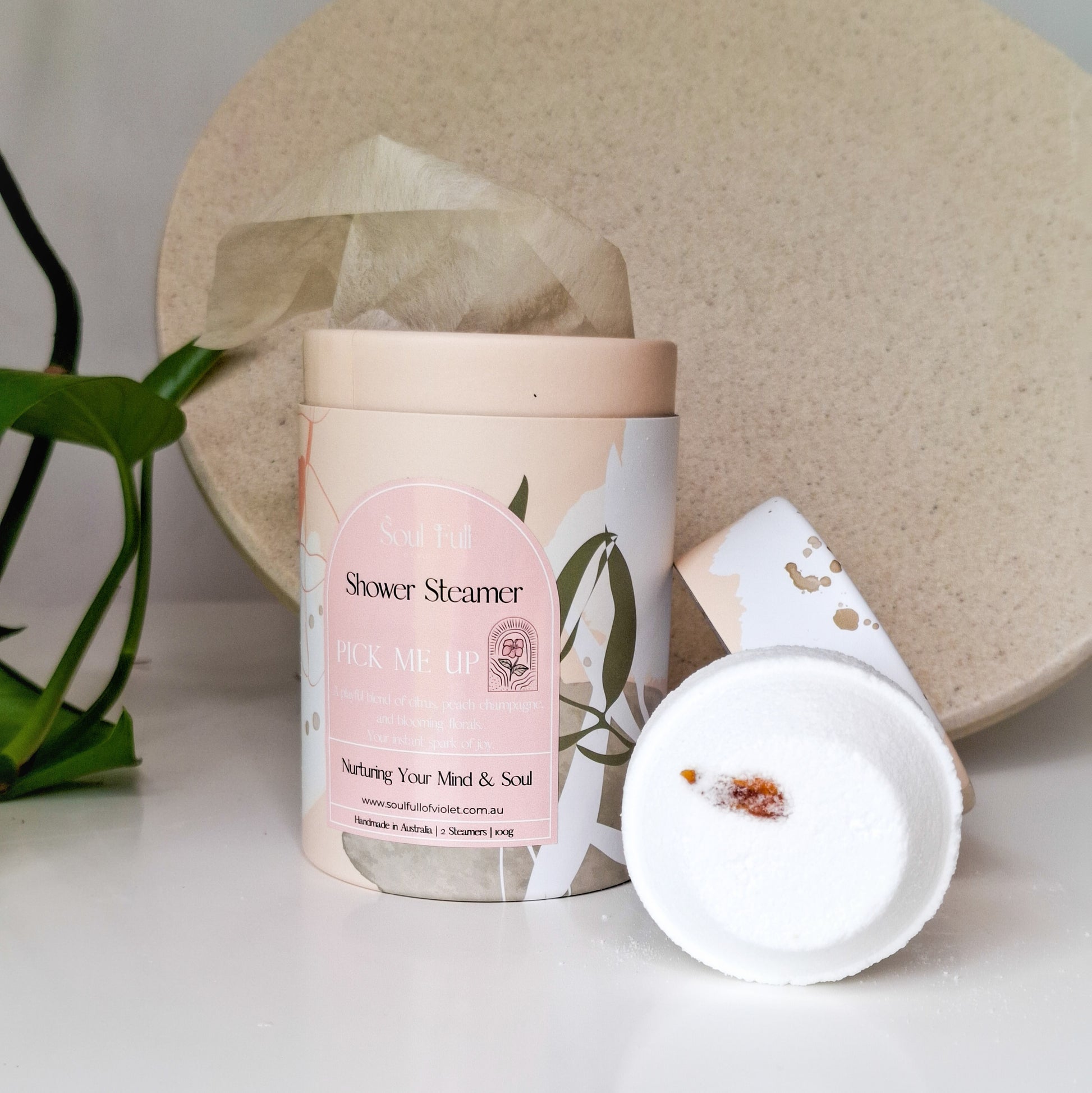 Your everything weekly shower bestie or your luxurious little escape; our shower steamers are made to fit into your routine however you need them. Simply place one on the base of your shower, or on a small dish just outside the direct stream, and let the fragrance fill your space as steam releases its soothing aroma.